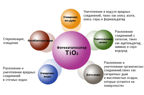 Что такое фотокатализ? Если не углубляться в сложную химию,то фотокатализ — это процесс, при котором вещество (катализатор) под действием света ускоряет химические реакции. В нашем случае катализатором выступает диоксид титана (TiO2), который входит в состав специальных красок.