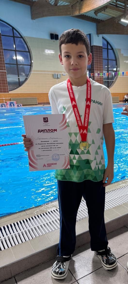 💫 Блестящее начало на первенстве по плаванию! Ученик 4 «Р» класса Кирилл завоевал 1 место на «Первенстве Московской академии плавания»! 🏆 Соревнования продолжаются — впереди ещё два насыщенных дня. Мы поздравляем Кирилла с блестящим стартом и желаем ему не сдавать позиций! Пусть эта золотая медаль — лишь первая ступень на пути юного пловца к новым спортивным вершинам! 💪 💙 #Школа1474 теперь и в MAX | #ДОНМ #ТалантливыеДетиМосквы