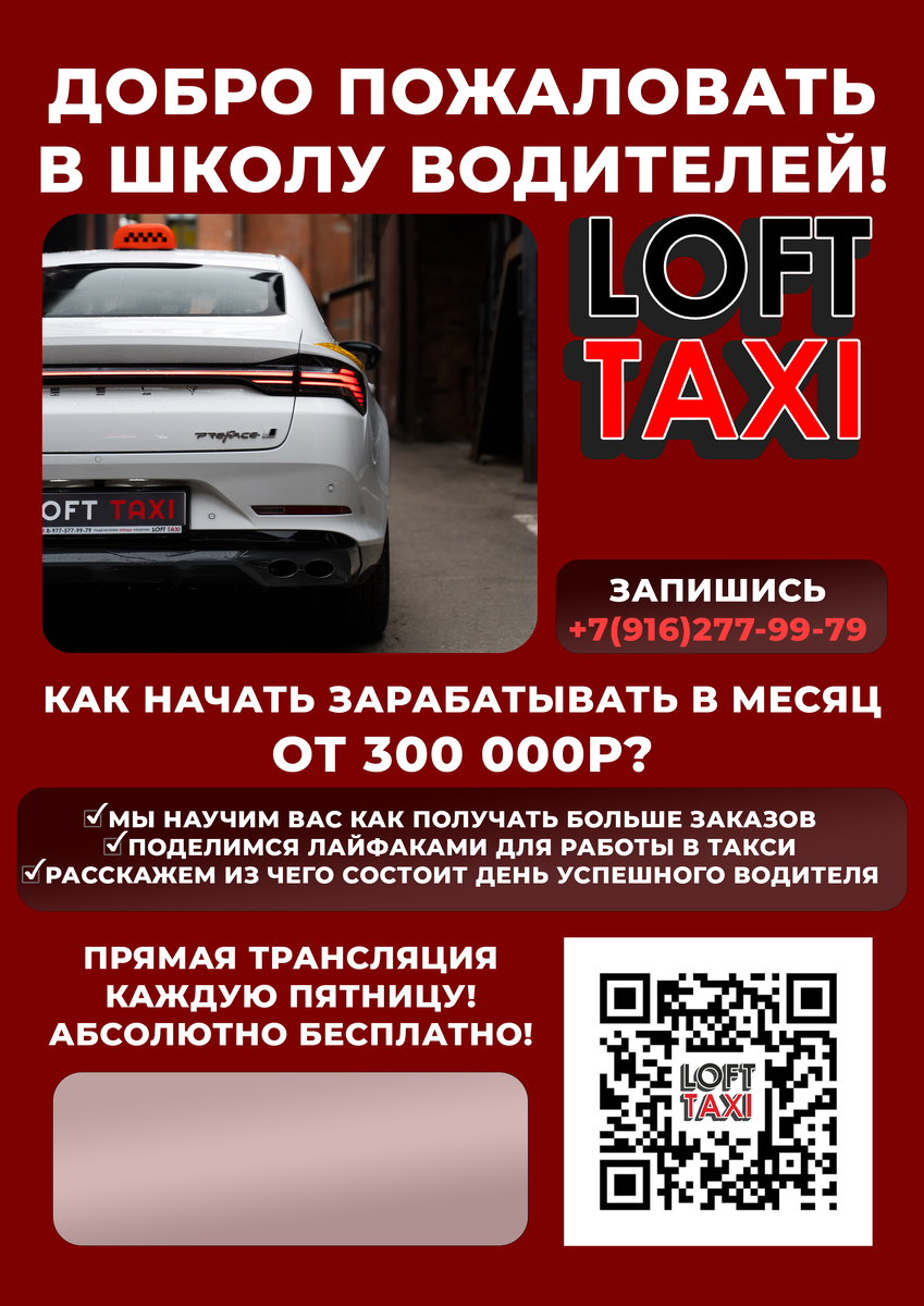 🎆Друзья, приготовьтесь к взрыву позитивных новостей😲! 🛍Команда LOFT TAXI распахивает двери собственной школы водительского мастерства – и это абсолютно бесплатно! 🚕Вспомните свои первые шаги в мире такси: неуверенность, вопросы без ответов, зыбкая почва под ногами. Мы протянем вам руку помощи, чтобы вы почувствовали себя асом за рулем, настоящим гуру прибыльных поездок💲! 🗓Уже завтра мы ждем всех жаждущих знаний в нашем уютном офисе, расположенном в любимом Красногорске, на 3 этаже в 14:00! Для тех, кто не сможет приехать, будет организована прямая трансляция на нашем канале ВКОНТАКТЕ📱 – не пропусти, будет очень интересно!