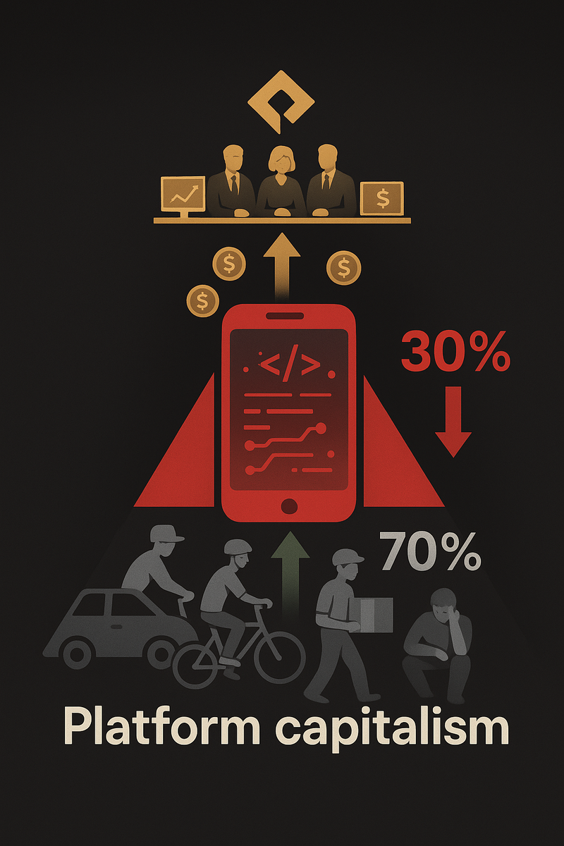 🚗 Как Яндекс.Такси обманывает водителей (и почему это эксплуатация) Вчера ехал на такси. Разговорились с водителем. Парню 35 лет, работает в Яндексе уже 3 года. По 12 часов в день, 6 дней в неделю. Практически живёт в машине. Спрашиваю: "Ну хоть нормально зарабатываешь?" Он посмеялся. "За смену делаю заказов на 3-4 тысячи. Яндекс забирает комиссию 25-30%. Остаётся 2500. Минус бензин тысяча. Минус износ машины, ремонт. На руки чистыми выходит 50-60 тысяч в месяц. За 72 часа в неделю". Я посчитал. Это 200 рублей в час. Меньше, чем во ВиТ. А теперь вопрос: Что делает Яндекс? Они не владеют машинами. Не платят за бензин. Не чинят авто. Вообще ничего не производят. У них просто есть приложение. Кнопочка "Заказать такси". И за эту кнопочку они забирают 25-30% с каждой поездки. Миллионы поездок в день. Миллиарды рублей в год. А водитель? Водитель убивает своё здоровье, свою машину, своё время. И получает копейки. "Но он же самозанятый! Сам выбрал!" Да, формально он самозанятый. То есть у не