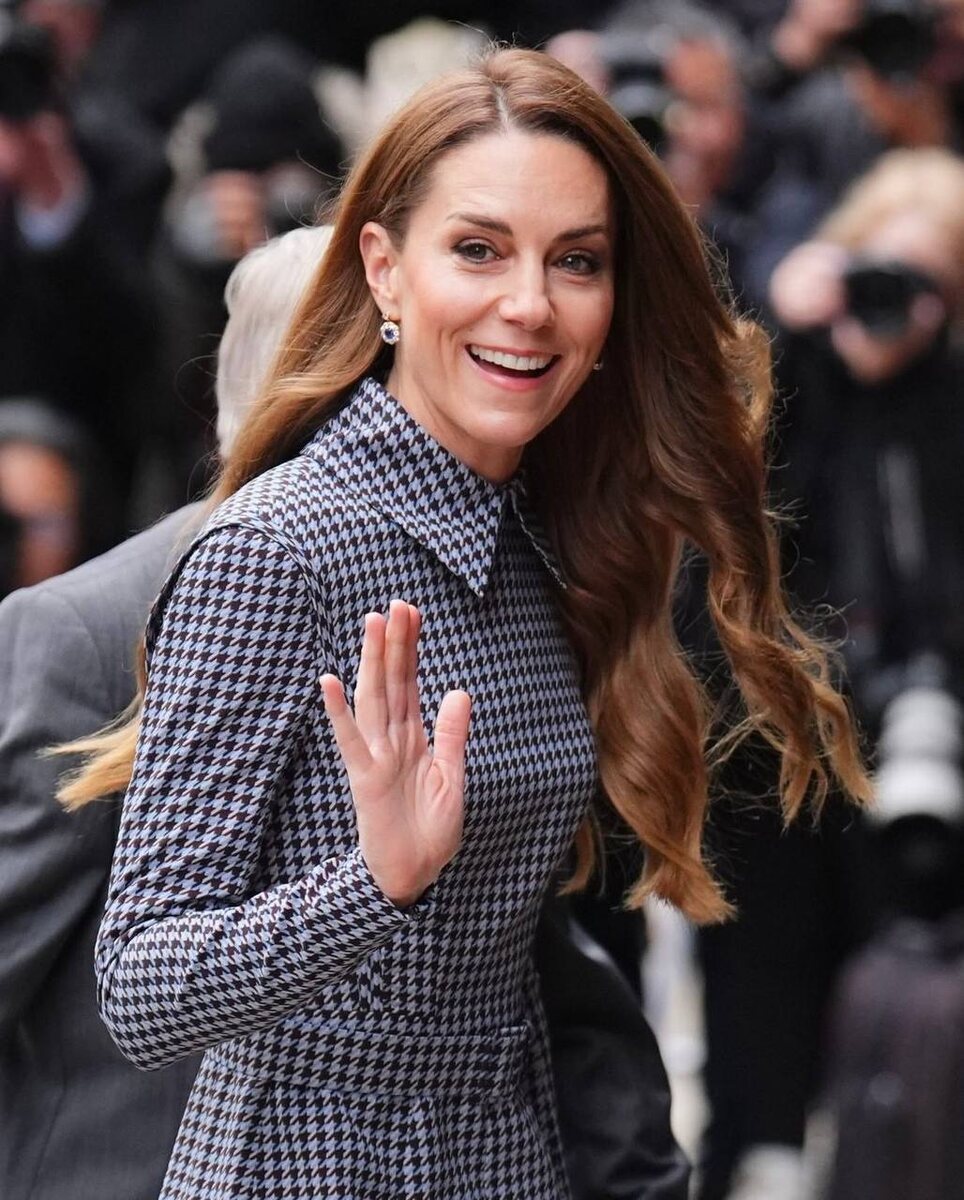 Принцесса Кэтрин посетила сегодня детский благотворительный фонд Анны Фрейд. Для выхода принцесса предпочла платье с принтом «гусиная лапка» от бренда Emilia Wickstead, каблуки от Boss и сумку от De Mellier. Как вам образ принцессы?
