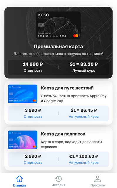 При этом баланс карты хранится в валюте (доллары или евро — зависит от продукта).