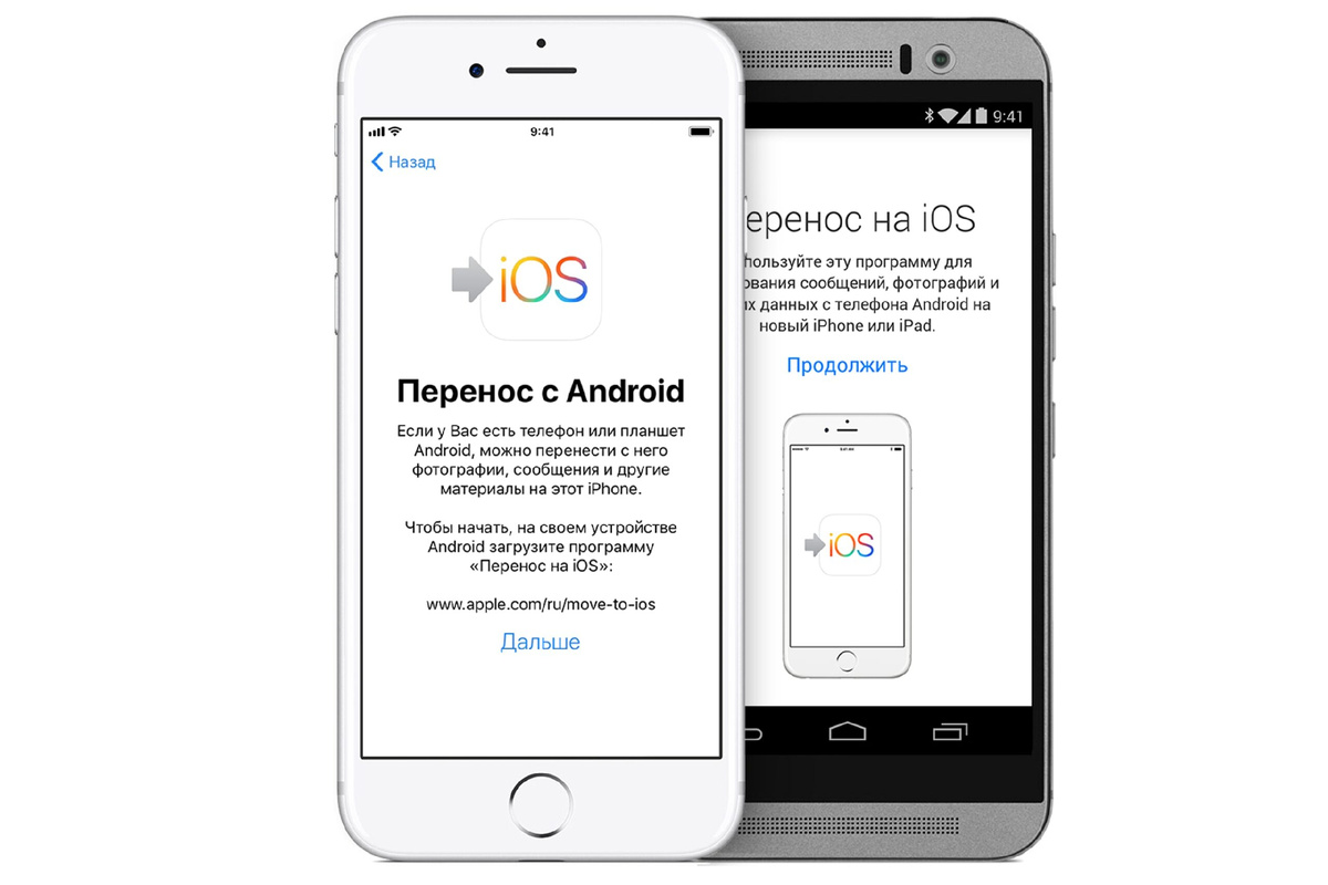2. Запускаем приложение на Android. Откройте «Перенос на iOS», нажмите «Продолжить» и примите