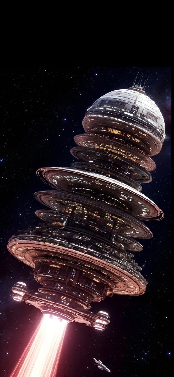 Апейрон – Галактический корабль поколений. Основные функциональные структурные элементы: Навигационная обсерватория открытого космоса, растительные плантации подвесных угодий эквивалентной площадью пятнадцать миллионов квадратных метров, пять уровней командных, технических, жилых комплексов, четырнадцать порталов отправки и приёма атмосферно-космической авиации, девять комплексов заводских цехов с гибкой линией производства, пятьдесят ремонтных мастерских, сто складов и девять научных лабораторий. Широкопрофильный медицинский центр. Перинатальный центр. Образовательные учреждения: двадцать четыре учреждения дошкольного образования, восемь средних школ, колледж культурно цивилизационного наследия, два политехнических высших учебных заведения. Полноразмерный футбольный стадион на двадцать пять тысяч зрителей, два бассейна по пятьдесят метров, четыре концертных зала, четыре кинотеатра. В центральных секторах пяти нижних уровней располагается термоядерная энергетическая установка. Общий ре