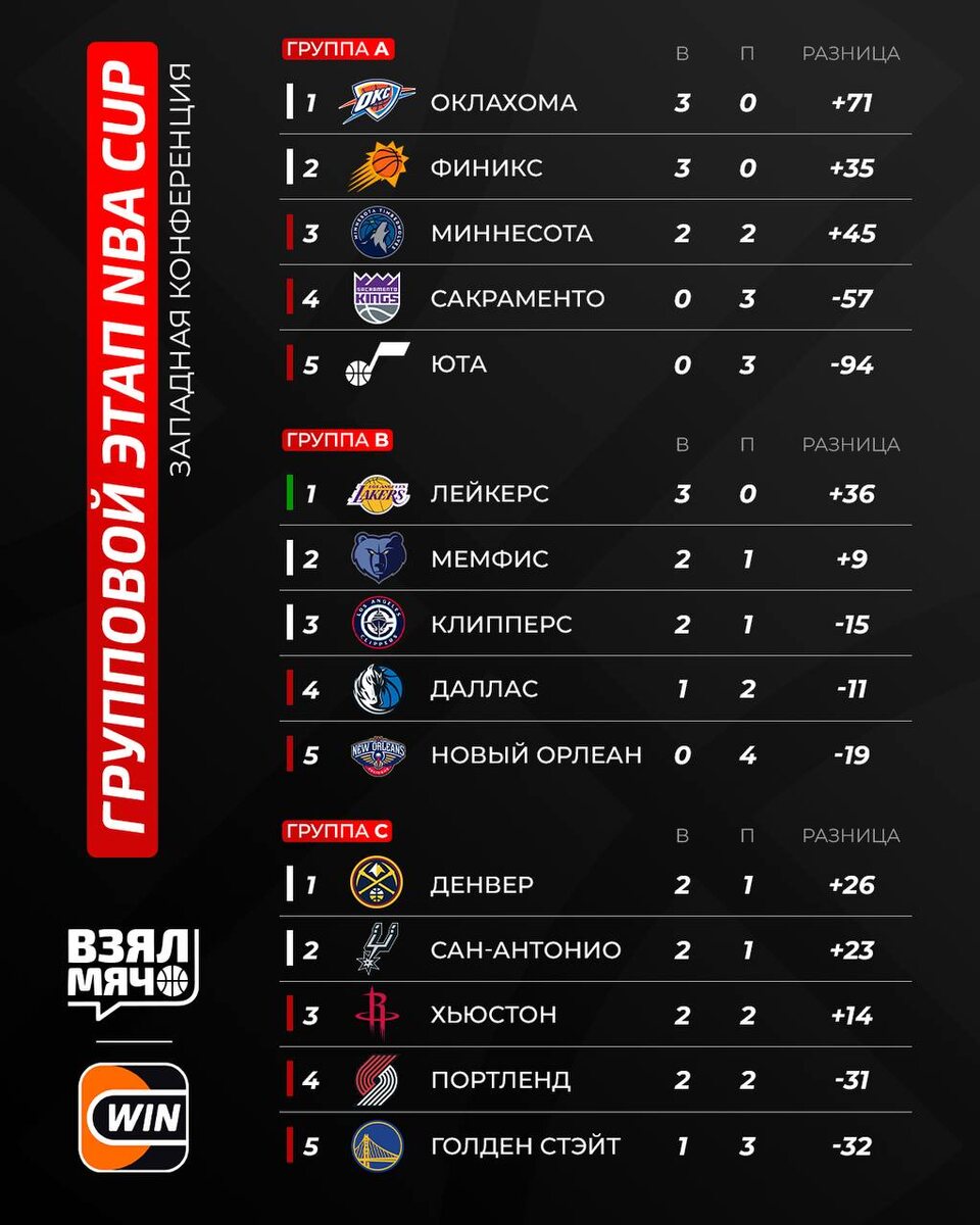 🏀 Обновлённая таблица Кубка НБА «Торонто» идеально прошёл групповой этап, а «Сакраменто», «Миннесота», «Хьюстон», «Портленд», «Голден Стэйт», «Атланта», «Вашингтон», «Бостон», «Бруклин», «Чикаго» и «Шарлотт» потеряли шансы на выход в плей-офф. Чей вылет расстроил вас больше всего? 🤔 🏀 ПОДПИШИСЬ — ЗДЕСЬ ЖИВЁТ БАСКЕТБОЛ!