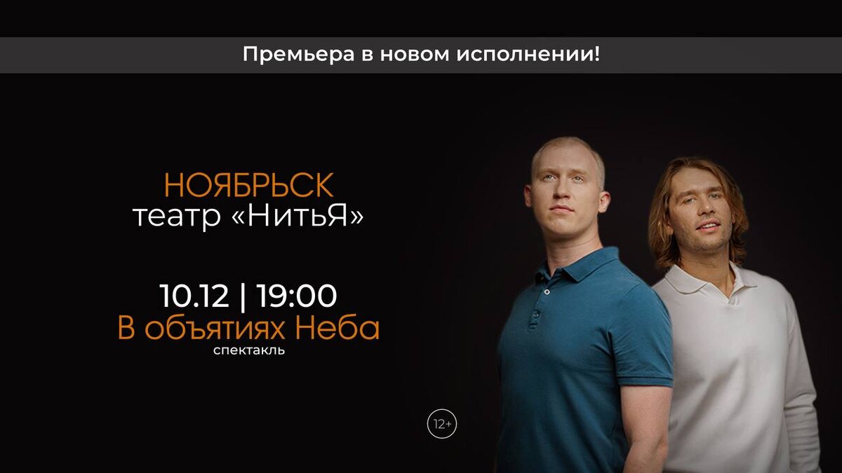 В ответ на пост Подарок для всех подписчиков «Ямал | Округ белых ночей» и театра «НитьЯ» — промокод на премьерный спектакль, который состоится 10 декабря 19:00 в ЦД «Нефтяник». «В объятиях неба» (12+) — это история в виде гирлянды душевных миниатюр с элементами интерактива, которая расскажет о тонких гранях любви, взаимопонимании и путях сохранения счастливых отношений. Спектакль наполнен искренними эмоциями и глубокими мыслями о том, как важно развеять сомнения и наполнить каждый дом миром и гармонией. На сцене — талантливые актеры Алексей Швецов и Алексей Чебыкин, которые подарят вам атмосферу тепла. Для всех подписчиков «Ямал | Округ белых ночей» — скидка 10% по промокоду YAMAL25 Подписаться | Прислать новость | Мы в MAX