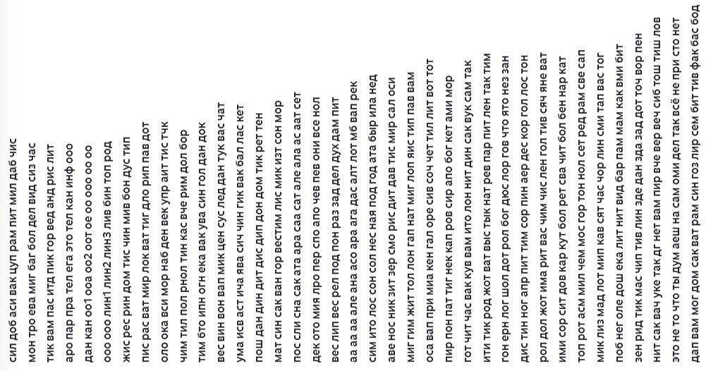гон ерн лог шол дот рол бог дюс лор гов что ято нез зан