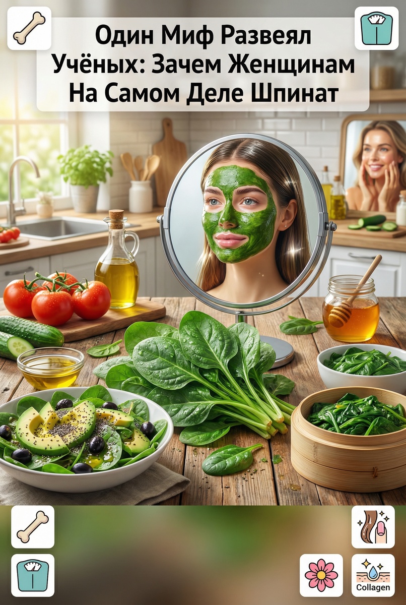 Привет! сегодня я расскажу вам правду о шпинате, которая вас удивит. Оказывается, всё, что вы знали о шпинате и железе, - это ошибка немецкого химика XIX века! Но вот в чём главное: даже без этого "суперсилы" шпинат остаётся одним из лучших продуктов для женского здоровья. И причины совсем не те, о которых говорили в детстве. В 1870-х годах немецкий химик фон Бунге исследовал высушенный шпинат и обнаружил, что в нём 35 мг железа на 100 граммов. Результат опубликовали и забыли одну важную деталь: он анализировал сухой шпинат, а не свежий! Свежий же шпинат на 90% состоит из воды. Реально железа в нём всего 2,7-3,5 мг - примерно как в других овощах. Эта ошибка была разоблачена только в 1981 году! Но вот что смешного: даже без "супер-железа" шпинат остаётся чудом природы для женщин. Давайте разберемся почему. В 100 граммах шпината содержится четыре суточные нормы витамина К! Это просто беспрецедентно. Витамин K - это не просто микроэлемент, это волшебница молодости: Укрепляет кости. Женщин