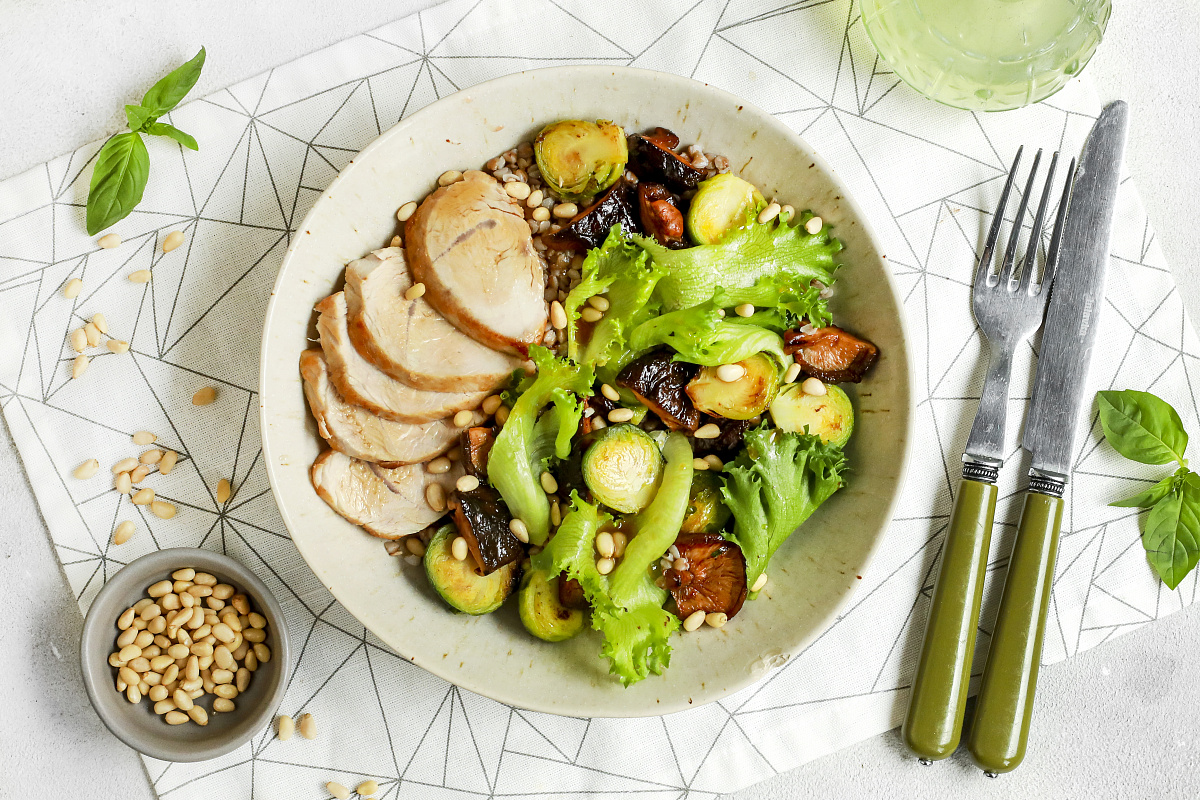 10. Брюссельскую капусту отварите 2-3 минуты в 1 л воды, разрежьте пополам.