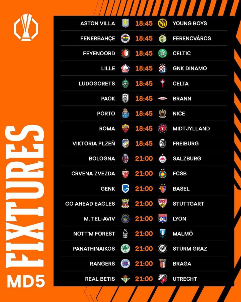 Предстоящие матчи Лиги Европы и Лиги конференций Время:СЕТ