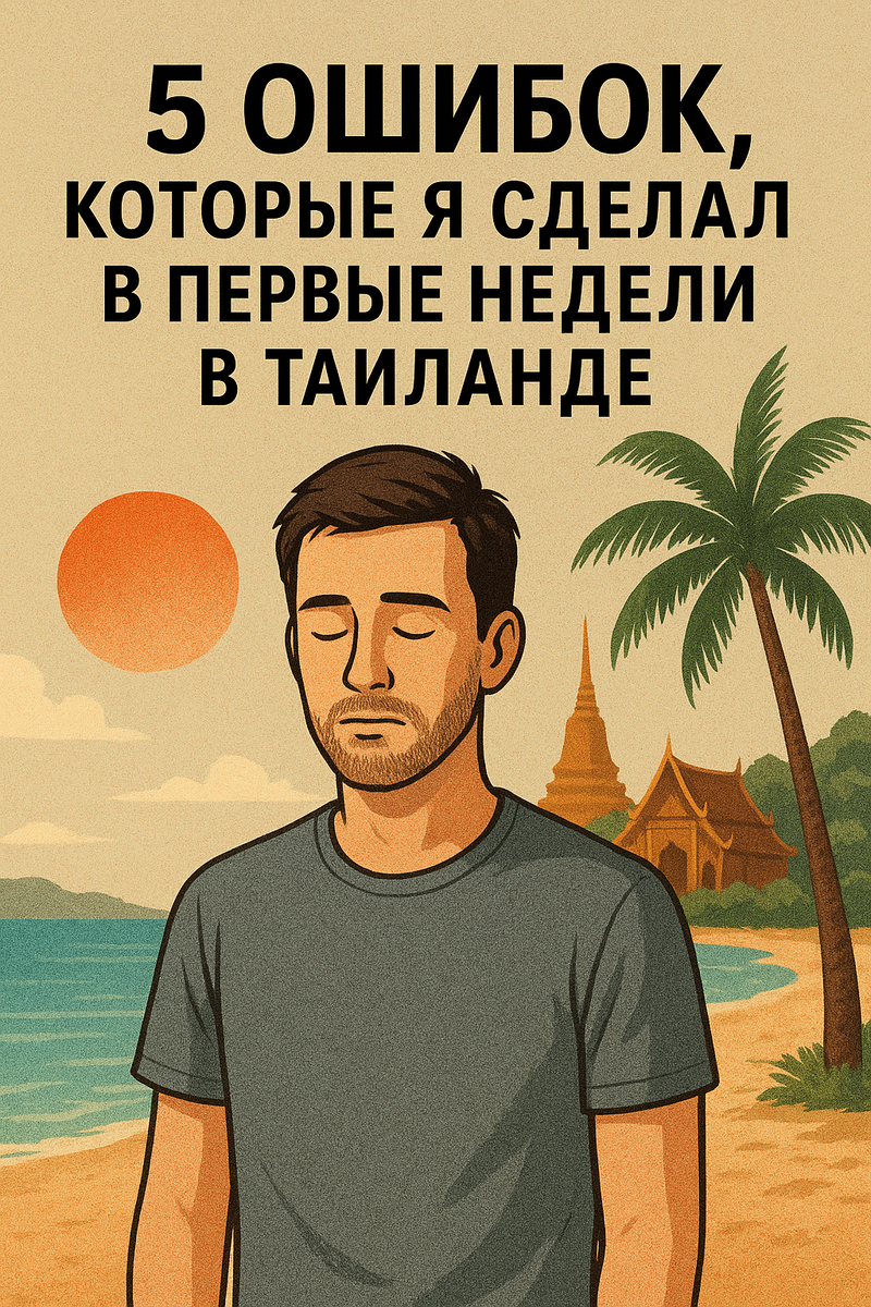 1. 🎣 Зачин — я думал, что готов к Таиланду… но нет Когда я только прилетел в Таиланд, мне казалось, что я всё знаю: куда ехать, что есть, как снимать байк. Спойлер: ничего я не знал 😅 И именно первые недели стали проверкой на прочность. Сегодня расскажу о пяти ошибках, которые стоили мне денег, нервов и пары бессонных ночей. Прилетел уставший, захотел просто «быстрее заселиться». В итоге получил: Надо было смотреть хотя бы 3–4 варианта, а ещё лучше — жить первые пару дней в отеле и искать спокойно. Я думал: «Ну раз турист… значит, цены такие». Нет. Я просто не умел торговаться и не знал среднюю стоимость. За байк я отдал на 1 500–2 000 бат больше, чем мог бы. Совет: всегда спрашивай цену в нескольких местах, не бери в первом же прокате. Это классика. У выхода из аэропорта меня схватили и предложили «хорошую цену». Хорошая — только для них 😄 Вышло почти вдвое дороже. Правильный вариант: Bolt / Grab / Airport Bus. Дешевле, спокойнее, честно. Думал: «Таиланд, солнце… фигня». Нет. Сгор