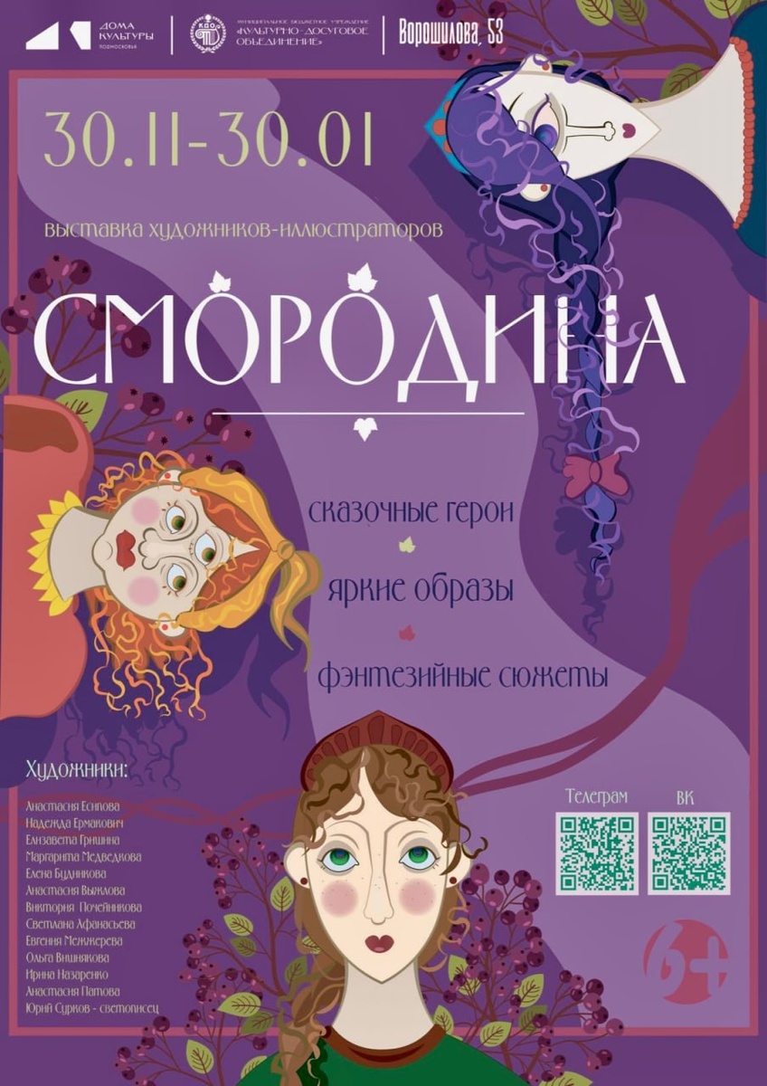 ✨ Открытие выставки художников-иллюстраторов «СМОРОДИНА»! 🎨Выставка представляет собой множество фэнтезийных образов и сюжетов: от оригинальных авторских персонажей до иллюстраций к классическим и народным сказка. 🖌️Художники представят зрителю невообразимых сказочных существ и героев, диковинных русалок и волшебных животных. 🔥Открытие состоится 30.11 в 17:00 P.S. для большей атмосферы приветствуются необычные образы гостей. 🚫 Возраст: 6+ 📆 30.11.2025 🕒 17:00 🏢 Арт пространство на Ворошилова 📍 г. Серпухов, ул Ворошилова, 53 ⭐Поддержать канал голосом 💰 Канал Вакансии Серпухова ✅ Мероприятия Серпухов https://dzen.ru/id/66f01c6eb4c6fe60c9ca1608 http://vk.com/serpukhov_events http://dzen.ru/serpukhov_events