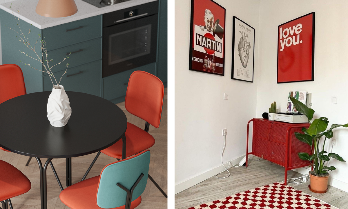 Акцентный цвет ещё и стабилизирует ощущение «моя квартира». Иногда интерьер слишком правильный, ровный, словно снятый с глянца. Один предмет может вернуть ему живость.