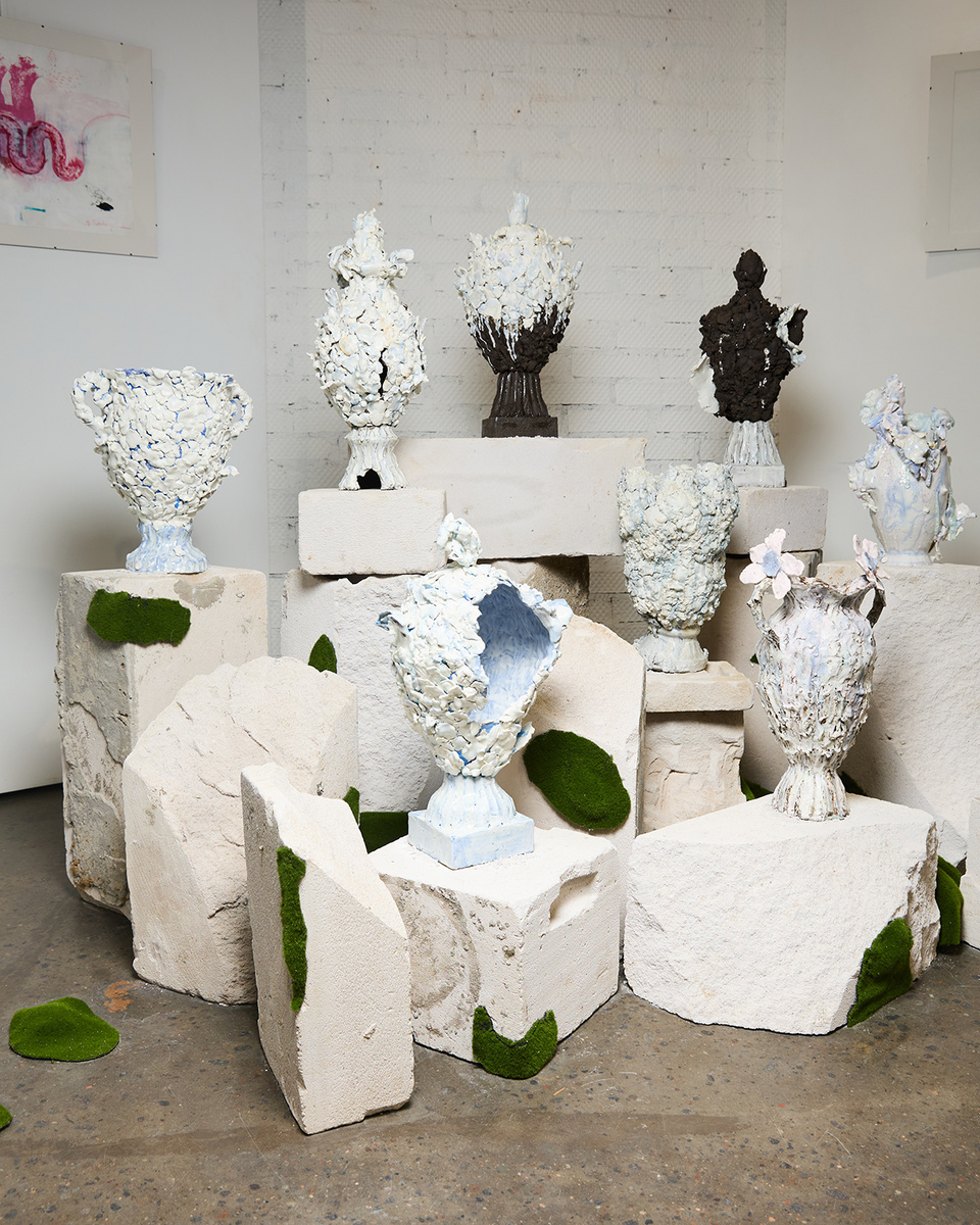 Начинаем знакомить вас с работами на выставке «Слишком долго, недостаточно быстро»! Керамика Майи Харитоновой – симбиоз рукотворного-человеческого и природного начал. Экспериментируя с материалами и техникой – глиной, фарфором, глазурями и стеклом и подвергая их многократному обжигу, Майя создает визуальную метафору хрупкости и изменчивости жизненных процессов и человеческих переживаний. Её вазы, собирающиеся в единую инсталляцию, напоминают алтарь забытых культур, обнаруженный во время археологических раскопок. Однако эти руины являются не символом разрушения, а идеей вечного возвращения и обновления. Майя Харитонова. Объекты из серии «Поглощение»