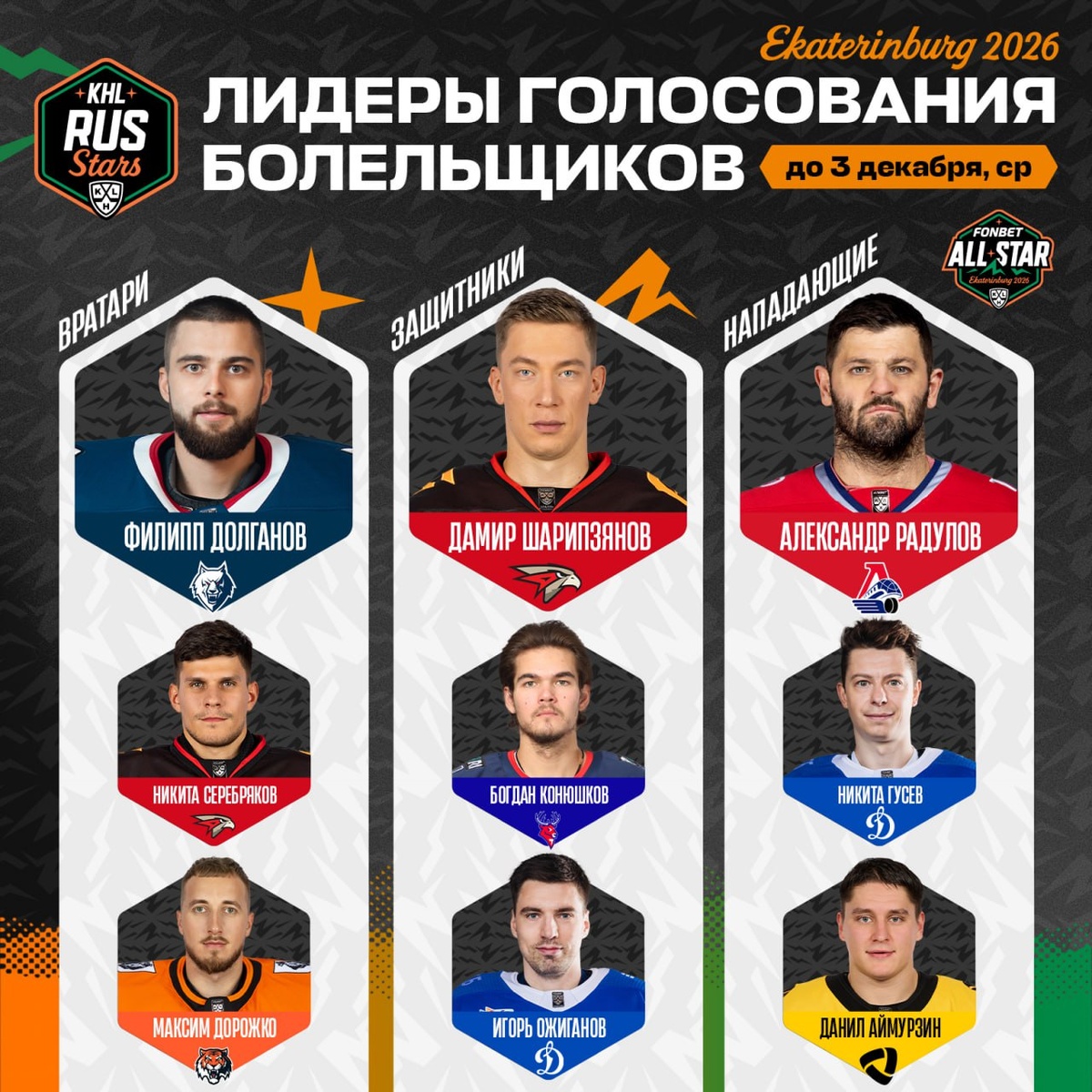 Кто лидирует в голосовании #KHLAllStar в команду RUS Stars? Всё еще может измениться