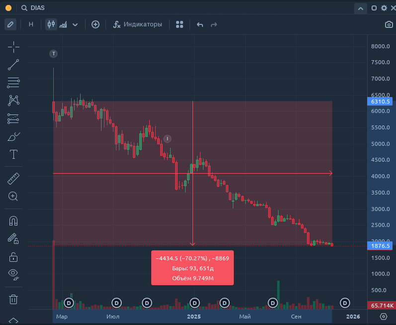 Похоже, у нас нашлась компания, которая решила переплюнуть «успехи» ВТБ. Перед IPO у меня был пост с обзором на Диасофрт: Тогда выводы были суровыми, но даже они не предполагали такого коллапса. Вот ключевые цитаты из того обзора: Несмотря на в целом негативный взгляд, я не ожидала, что обвал будет настолько стремительным. Это точно растущая IT-компания? При таких показателях текущая оценка выглядит не просто завышенной, а неадекватной: Тренд на рост сломлен: Компания в 2025 году планирует выплату дивидендов не реже одного раза в полугодие в размере не менее 80% EBITDAC. Никто не собирается инвестировать в рост. Все, что можно, будет выведено из бизнеса. Фактически, IPO стало инструментом для монетизации уставшего бизнеса. Сигналы очень тревожные. Диасофт — не тот бизнес, которым хотелось бы владеть (c) Ваши "лайки" - лучшая обратная связь для автора блога! Чуть раньше статьи выходят в Телеграм