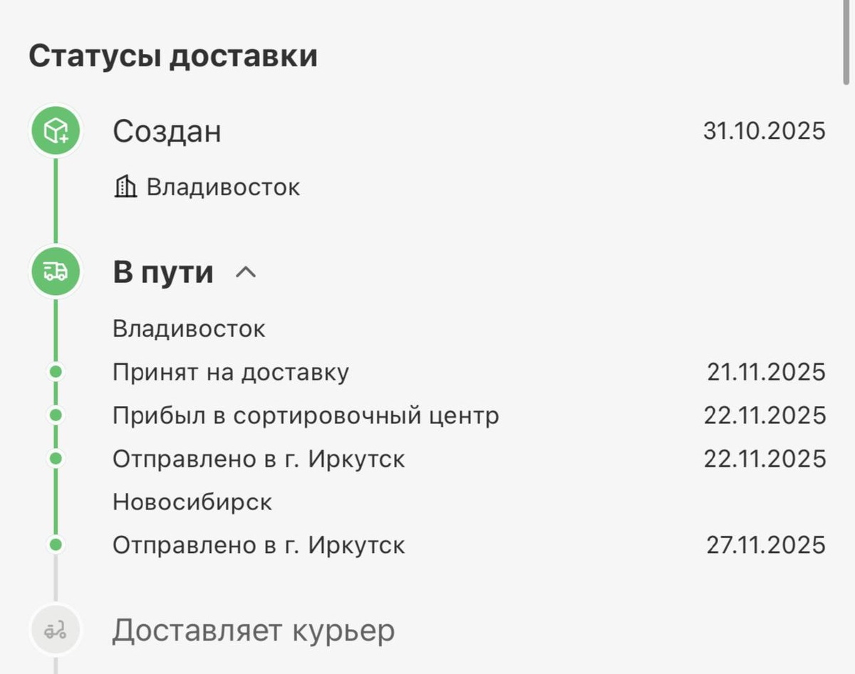 Вот, что я вижу….. аааааа 🙃 И думается мне, что доставка не догадается в Красноярске перехватить его. Как будто он уедет в Иркутск снова. Что бы вернуться вновь в Красноярск 😸