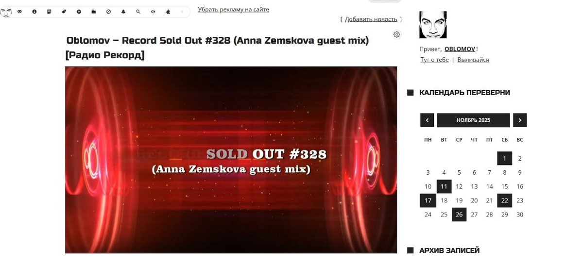 Запись вчерашнего эфира уже НА САЙТЕ!! Вот прямая ссылка https://oblomov.ucoz.ru/news/oblomov_record_sold_out_328_anna_zemskova_guest_mix_radio_rekord/2025-11-26-1644 🎶