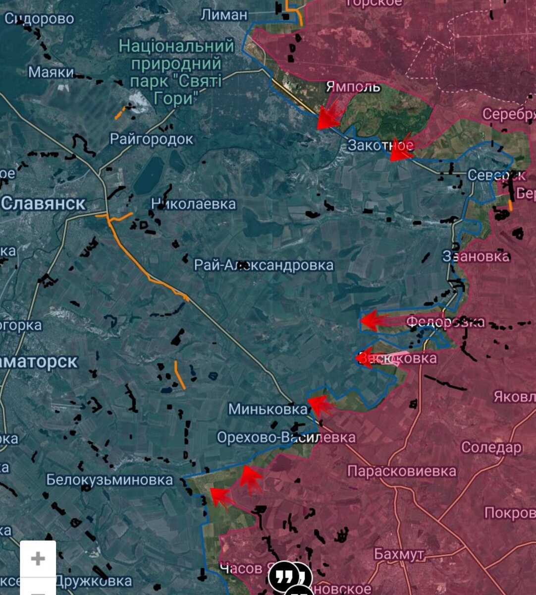 🪂 Славянское направление. На Славянском направлении возобновились активные боевые действия, наши войска продвигаются со стороны Ямполя, Звановки и Григоровки. ▫️ В ходе боевых действий полностью освобождён населённый пункт Майское, после чего российские подразделения развили успех и продвинулись в сторону Марково и Новомарково, а также в районе Зализнянского по трассе Е-40. Идет зачистка прилегающих посадок и закрепление на новых рубежах, что обеспечивает устойчивый контроль. ▫️ ВС РФ освободили Васюковку и продвинулись в направлении Бондарного, продавливая оборонительную систему противника. Украинские подразделения вынуждены отступать на менее выгодные рубежи, чтобы не допустить оперативного охвата. Также идёт охват территории со стороны Закотного, что позволяет разрезать оборону противника на секторы. ▫️ Южнее, на Константиновском направлении подразделения ВС РФ продвинулсь вдоль автодороги на Константиновку до 1000 метров. Укрепление на этих рубежах позволяет сжимать тактиче