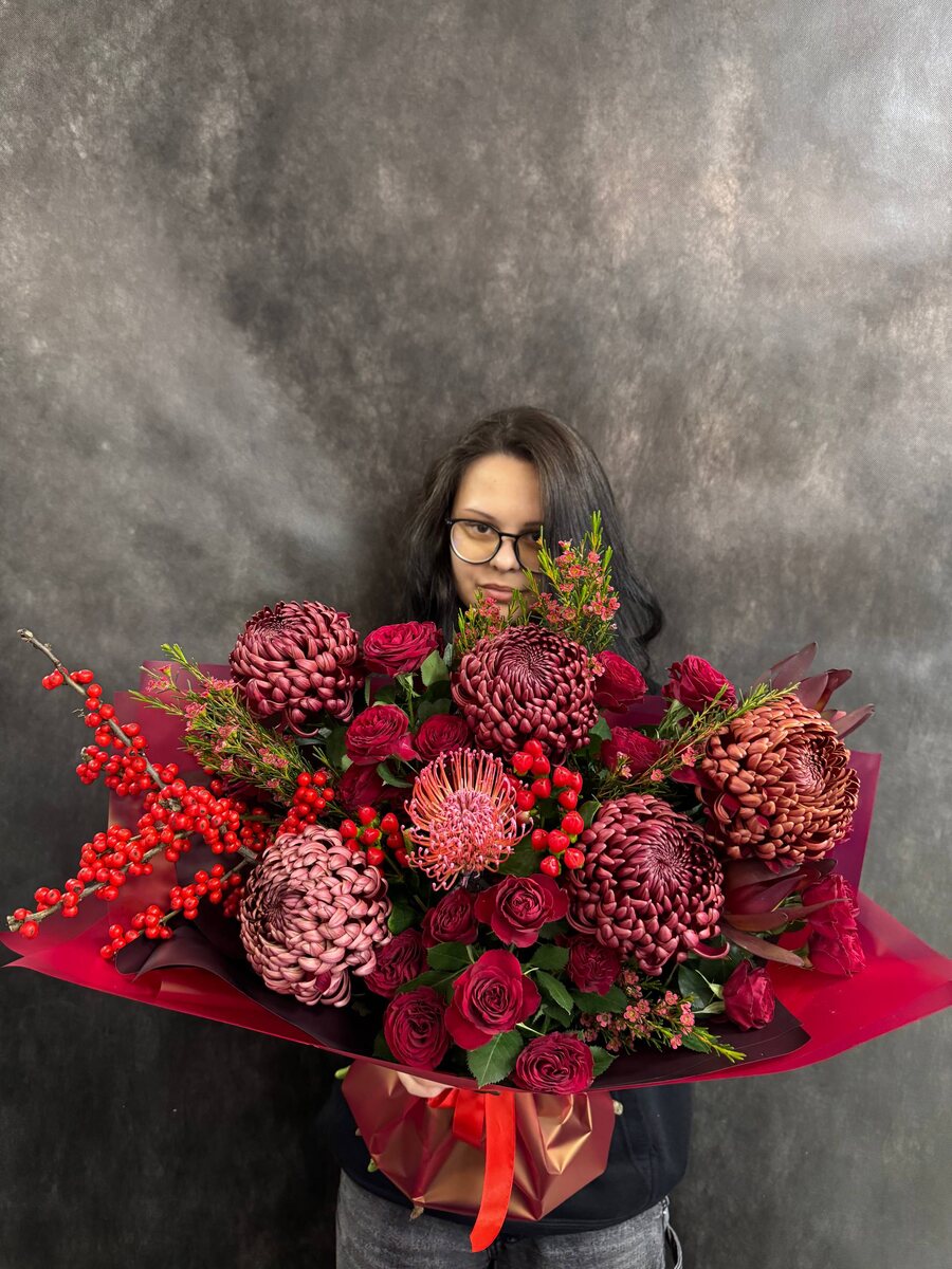 🔥 Бордовый шик, который невозможно забыть 🔥 Этот букет — настоящая сила и элегантность в цветах. 🌹 Идеален для тех, кто любит роскошь и выразительность. Такой букет дарят, когда хотят произвести впечатление, сказать о своих чувствах громко и красиво или подчеркнуть важность момента. @florellesi105 @Florellesi