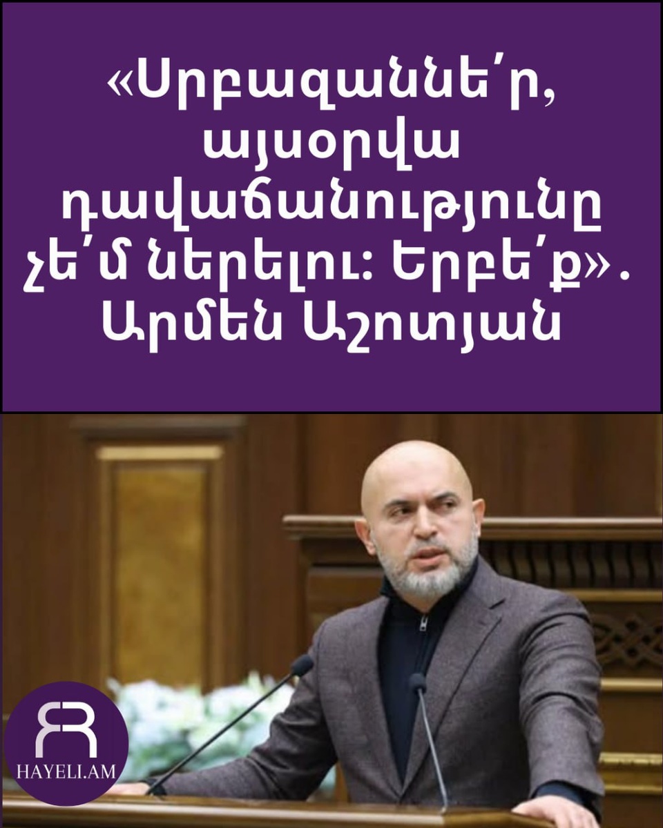 «Նիկոլին այսօր հանդիպած սրբազանների մի մասի հետ ժամանակին մոտ էի, ոմանց հետ՝ շա՜տ մոտ։ Քանի կնունք, հարսանիք, որքան հաց, գինի եւ զրույց ենք կիսել։ Ես նրանց մարդկայնորեն կներեի ամեն կոմպրոմատ, ամեն բան։ Վերջիվերջո, ոչ մեկ կատարյալ չէ։ Բայց այսօրվա դավաճանությունը չե’մ ներելու։ Երբե’ք»․ Արմեն Աշոտյան