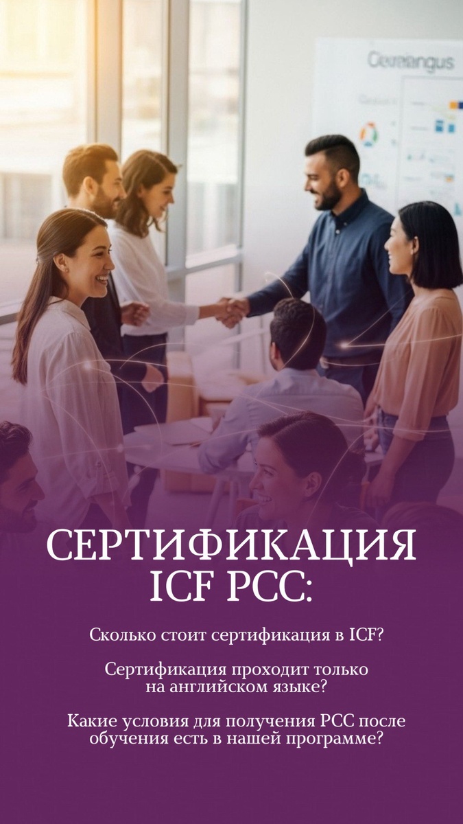 Сколько стоит сертификация в ICF? Она проходит только на английском? Какие условия после обучения в нашей программе? Разбираем подробно 👇 💸 Стоимость подачи на PCC: от $300 до $500, зависит от пути подачи (например, через аккредитованную программу) и членства в ICF. Актуальные данные всегда на официальном сайте 🌐 Сертификация проходит только на английском? Нет 🙂↔️ • Коучинговые сессии можно сдавать на русском, если есть русскоговорящие ассессоры. • Финальный тест CKA доступен на английском, французском, испанском и немецком. • В нашей программе вы получаете подготовку к CKA даже без идеального английского. 📘 Какие условия после обучения в нашей программе? • Ассессмент проходит внутри программы, без внешних сессий. • Включены 10 часов менторинга. • Сертификат Level 2 позволяет подавать заявку на PCC напрямую. • Есть полное сопровождение от документов до получения PCC. Если хотите узнать больше о том, как наша программа помогает пройти путь к PCC проще и быстрее- все подро