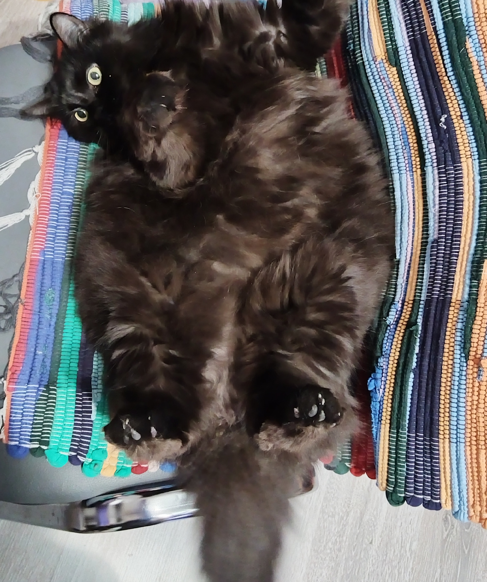 У каждой кошки есть в доме свой любимый уголок для отдыха. У некоторых котеек таких уголков два, три, и даже десяток. Есть кошечки и котики, которые постоянно меняют место для отдыха. А другие консервативны и отдыхают всегда на одном и том же диване, кресле, полочке... Я уже выучила предпочтения своих кошек и ежевечерне отодвигаю перед сном подушку от стены. Если этого не сделать, то через двадцать минут, когда сон подкрадется ко мне на цыпочках, на мою голову упадёт шотландская попень с распушённым хвостом. Это Бусенька пришла почивать на свое любимое место: между стенкой и моей подушкой. Причем спит она там на спине, в позе "зайки". Баневна предпочитает ночью рухнуть мне на ноги и потом до утра ноги немеют в неудобной позе. Приходится раскорячиваться, чтобы не потревожить Тучку. Это, что касается ночного отдыха. А днем, когда мы уходим на работу, Буся неизменно устраивается на стуле с накидкой из тканного коврика, а Баня сидит и ждёт, когда Александр накроет кровать пледом. Оче