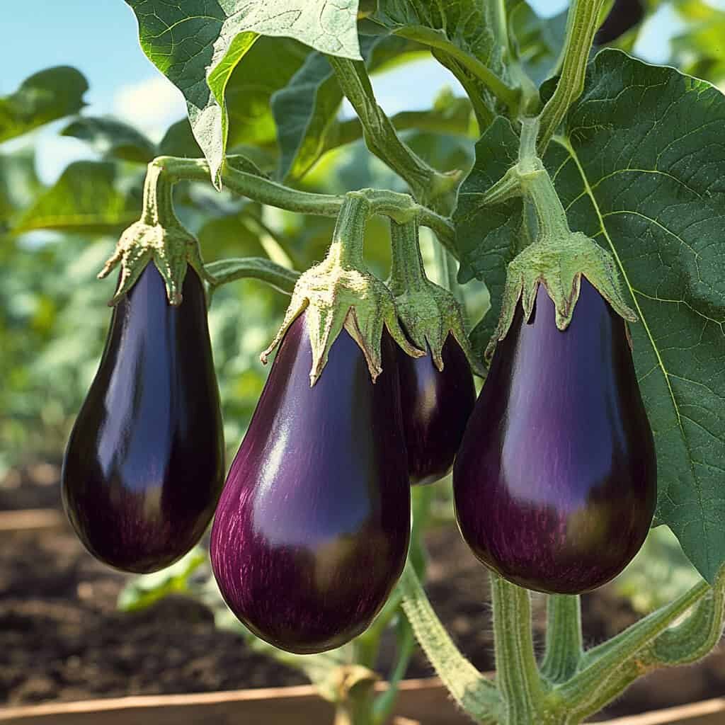 🔹Черный красавец: Проверенный временем сорт, отличается стабильной урожайностью и отличным вкусом. Среднеспелый (120-125 дней) сорт для открытого грунта с одновременным созреванием. Растения полураскидистые, высотой 0,6-0,8 м (в теплице). Плоды грушевидные, коричнево-фиолетовые, массой 140-200 г, без горечи, с тонкой кожицей и небольшим количеством семян. Подходит для кулинарии, консервирования и замораживания.
