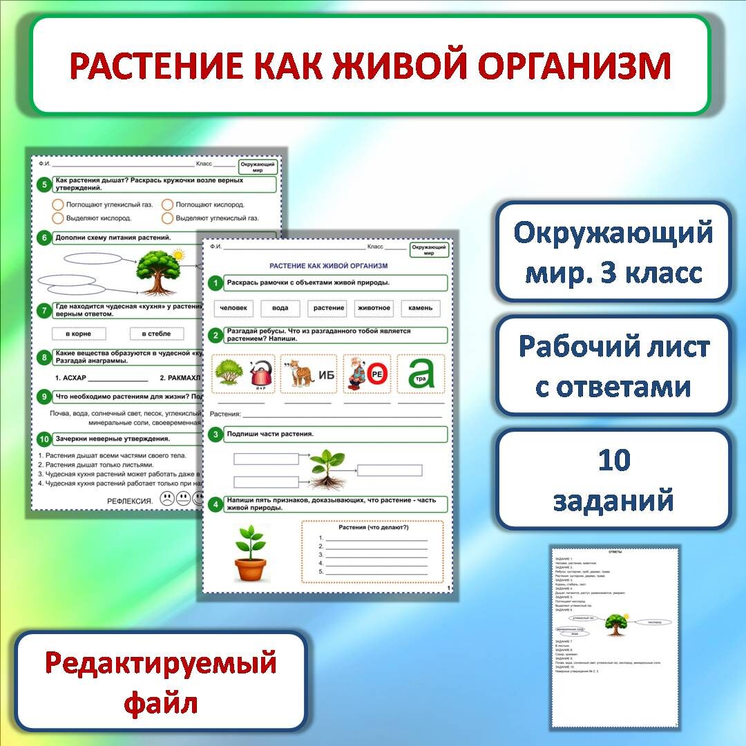 Рабочий лист «Растение как живой организм». 3 класс