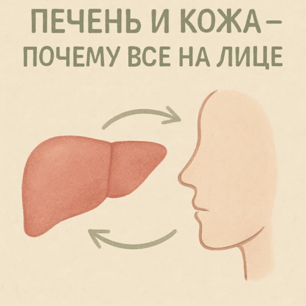 🧴 ПЕЧЕНЬ И КОЖА — ПОЧЕМУ ВСЕ НА ЛИЦЕ Кожа очень часто показывает то, что происходит в печени И это не “народные приметы”, а нормальная физиология ⏺Прыщи Когда печень не успевает обезвреживать токсины, часть нагрузки уходит на кожу Себум становится гуще, поры воспаляются — появляются высыпания ⏺Сухость Печень участвует в синтезе жирных кислот Если она работает вяло — кожа теряет защитный барьер и влагу ⏺Пигментация При перегрузе печени растёт уровень окислительного стресса Это ускоряет появление пигментных пятен и замедляет их исчезновение ⏺Серый цвет лица Замедленный детокс → накопление продуктов обмена → кровь хуже насыщает кожу кислородом