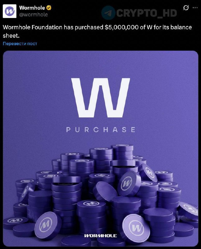 💸 #W В Wormhole Foundation купили токенов W на $5,000,000 на свой баланс – анонс