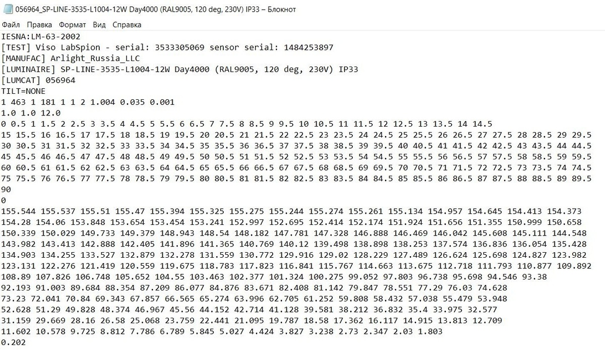 Несмотря на то, что IES — это обычный текстовый файл, внутри него содержится большой массив чисел, описывающий светораспределение.