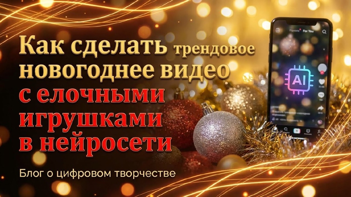 Как сделать в нейросети трендовое новогоднее видео с ёлочными игрушками