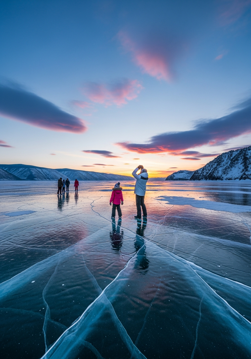 Байкал замерзает к концу января, превращаясь в гигантский каток площадью с небольшую европейскую страну. Лед достигает метровой толщины и спокойно выдерживает вес автомобилей. В начале прошлого века по замерзшему озеру даже ходил поезд по специально проложенным рельсам.