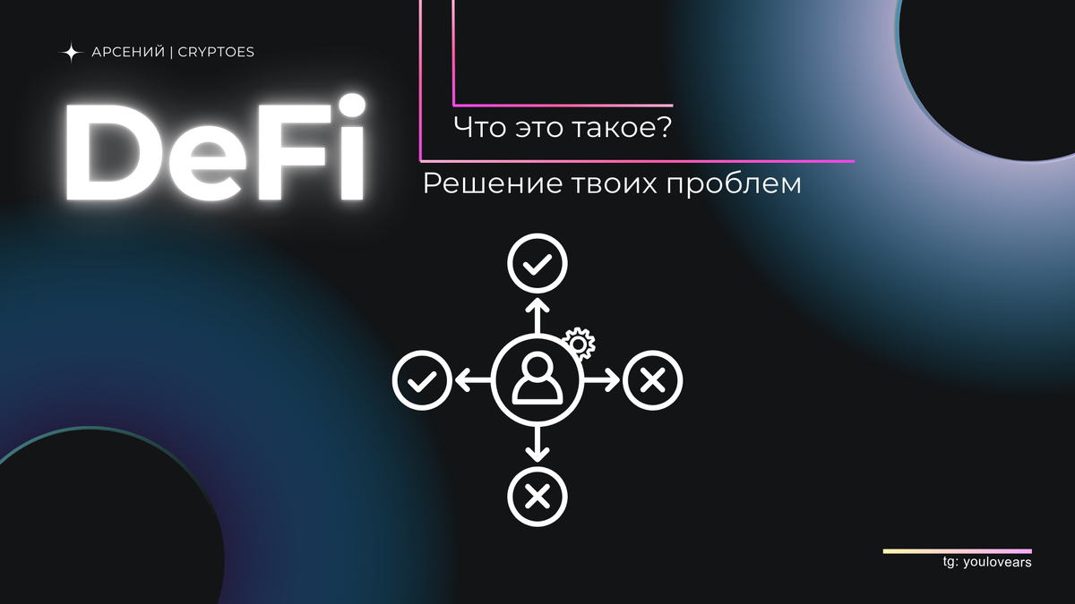 Некоторые носят наличку, кто-то хранит и использует деньги на карте, а сейчас все чаще мы расплачиваемся смартфоном или даже улыбкой! Но что, если я вам скажу, что есть технология, которая позволяет брать кредиты, делать вклады без банков. Сейчас речь пойдет про DeFi. DeFi (decentralized Finance) - децентрализованные финансы Общее у DeFi и банков с доступом в интернет то, что при создании изначально они реализовывались как обычные нишевые решения. Но в итоге перевернули мир. Буквально в каждой своей статье я упоминаю какую-то технологию, которая представляет аналог какого-то решения из реального мира. И DeFi - не исключение. Отличие в том, что DeFi идёт дальше, ведь здесь нет офисов (как у Т-Банка), службы поддержки и многостраничных договоров. Как и в смарт-контрактах, все работает через код. По сути, смарт-контракты и есть неотъемлемая часть DeFi. Прочитать про них вы можете тут. Что это за магия? Представьте обычный вклад. В банке вы отдаёте деньги, а он платит вам проценты. Так