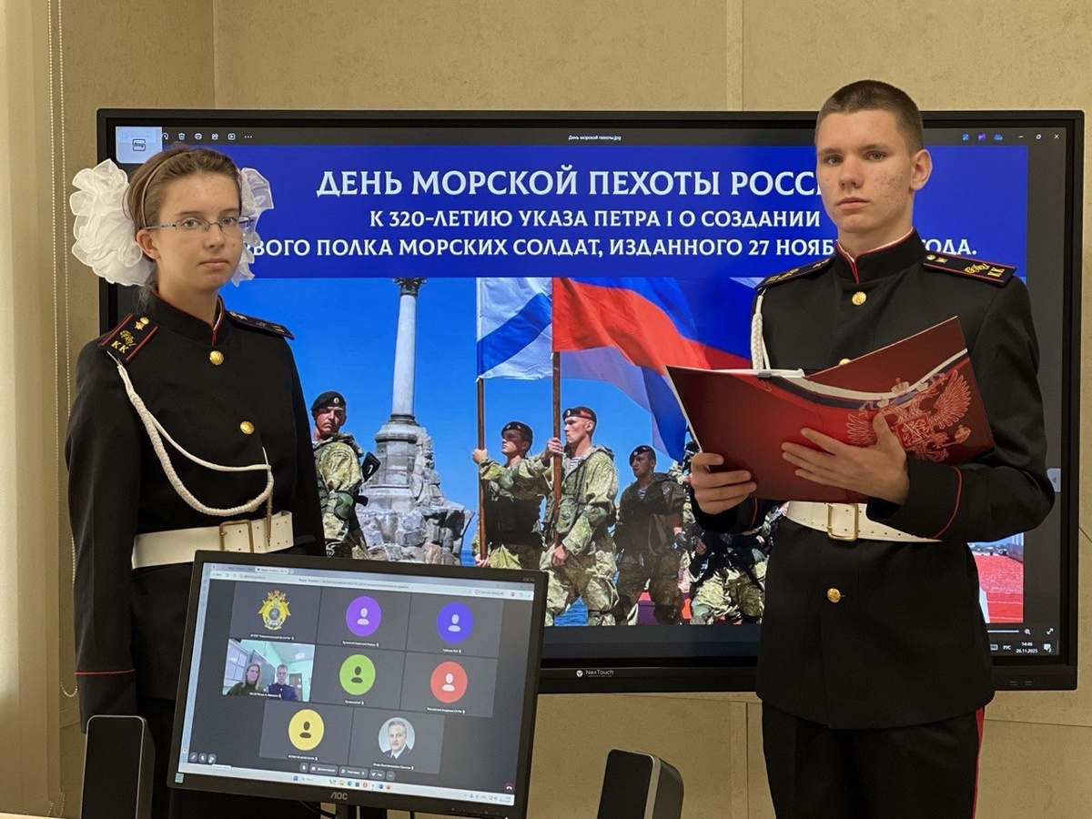 Курсанты и кадеты образовательных организаций СК России приняли участие в научно-практической конференции, посвященной 320-летию создания морской пехоты России Организатором мероприятия выступил отдел организации образовательной деятельности, модератором – Севастопольский кадетский корпус имени В.И. Истомина. В работе конференции приняли участие обучающихся ведомственных образовательных организаций, а также кадеты профильных кадетских классов СК России из г. Калининграда и г. Мурманска. Участники мероприятия ознакомились с героическими подвигами морских пехотинцев, что позволило им глубже оценить значимость их деятельности в военной истории России, проникнуться духом славных побед. С докладом о героизме Ольшанского десанта выступила курсант Московской академии имени А.Я. Сухарева Муллагалиева Динара, а обучающийся Волгоградского кадетского корпуса имени Ф.Ф. Слипченко Песчанский Павел рассказал о подвигах морских пехотинцев в зоне проведения СВО. Неподдельный интерес вызвали выступлен
