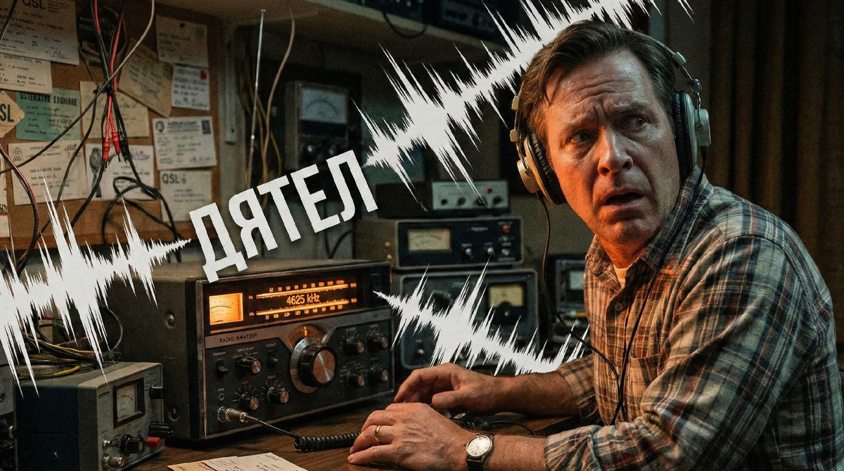 Представь 1976 год. Ты радиолюбитель где-нибудь в Оклахоме или Лидсе. Вечер, чай, ламповый трансивер. Ты крутишь ручку настройки на 14 МГц, ожидая поймать джаз или новости. Но вместо этого эфир разрывает резкий, ритмичный долбёж: тук-тук-тук-тук. Десять ударов в секунду. Мощность такая, что стрелка индикатора бьётся об ограничитель. Ты не знаешь, что этот звук, прозванный «Русским дятлом», рождается за 8000 километров, в глухих лесах под Чернобылем. Там, среди сосен, стальная решётка размером с небоскрёб только что включилась на полную мощность, используя небо как зеркало, чтобы заглянуть тебе за спину. Это не помехи. Это звук Холодной войны.