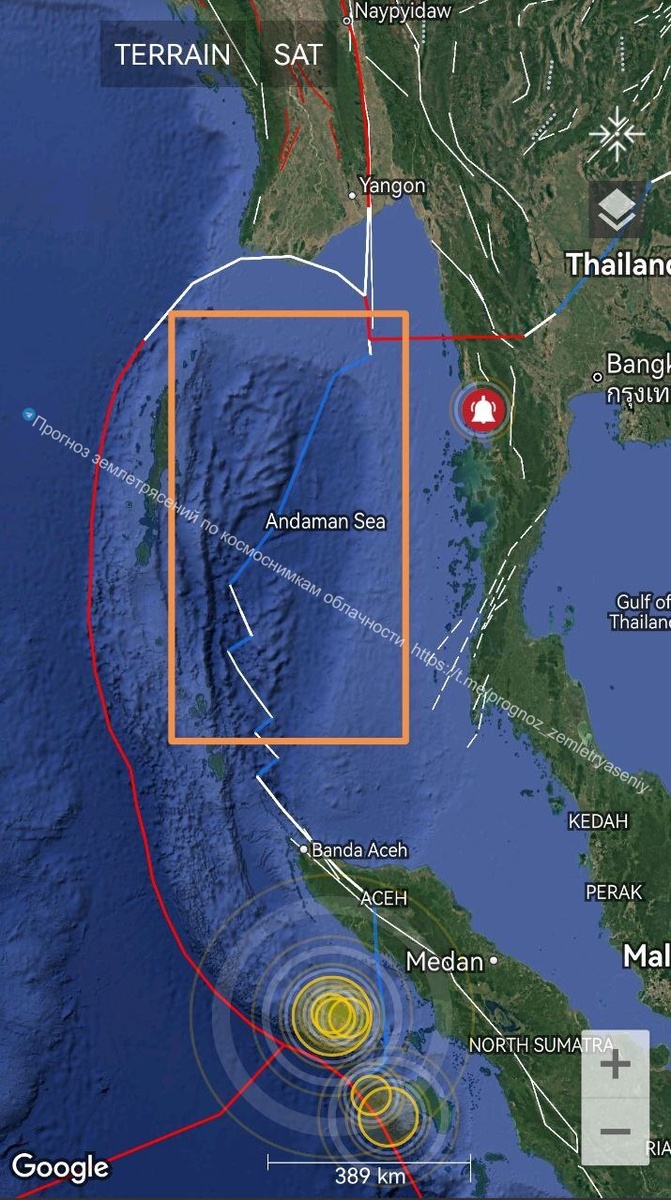 В ответ на пост По Андаманскому морю и северо-западной Суматре есть вероятность повторного землетрясения уровня М6+ в течение 7 дней. P.S. Совсем забыл... 20-го ноября у Суматры наблюдался ОСТИ, дающий потенциальную магнитуду до М7.5+/-0.2 ==== Across the Andaman Sea and northwestern Sumatra, there is a possibility of a second M6+ earthquake within 7 days.