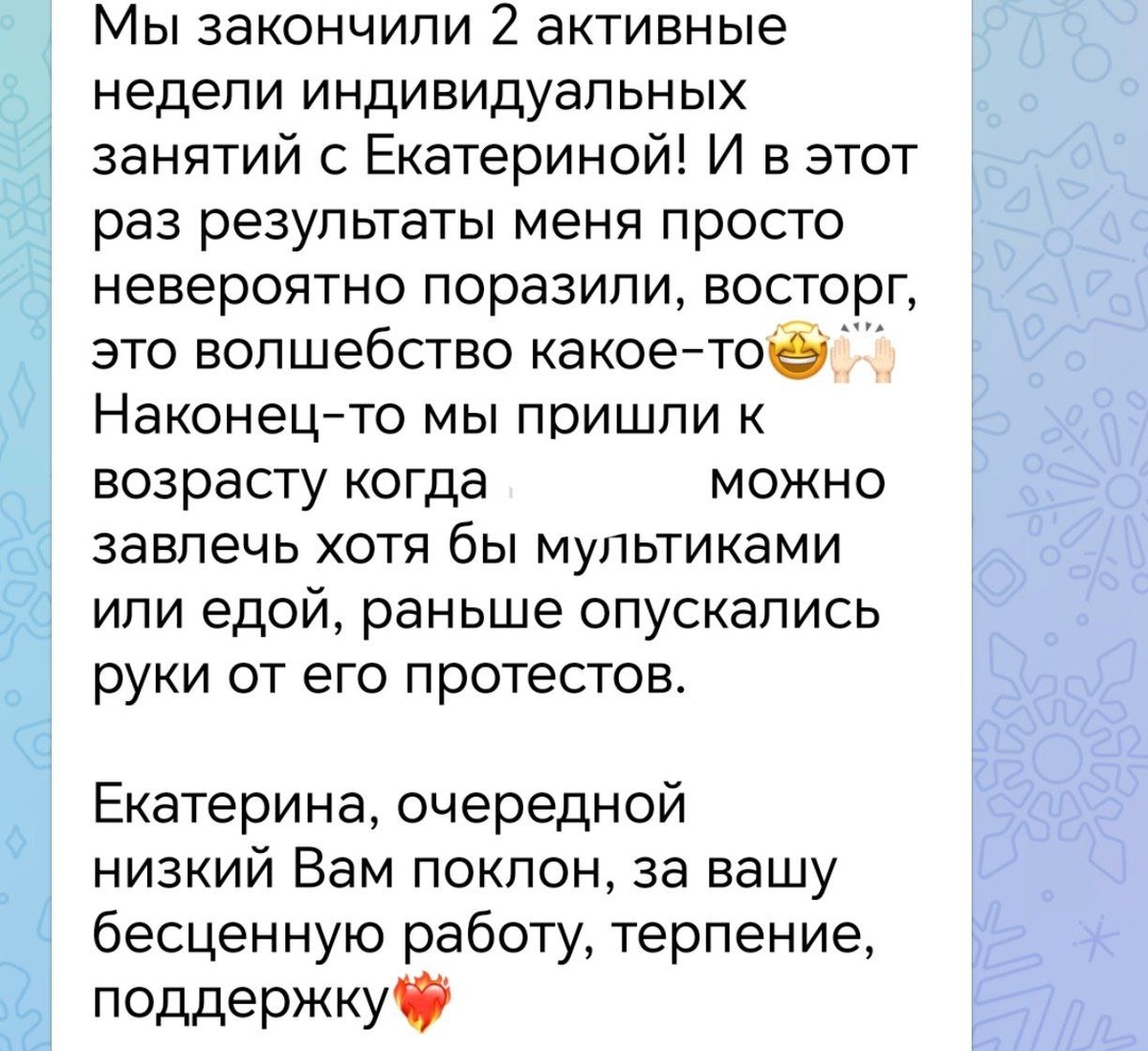 #случайныйотзыв Работали с шагом, исправили постановку стоп Спасибо маме за твердое решение заниматься💫 и силу духа🌱 ✔️Заметила нарушения ещё в первые месяцы ✔️Занимались в несколько этапов на первом году ✔️Были сложности с настроением мотивацией, организацией процесса ✔️Все выдержали вместе: постоянно переписывались, придумывали адаптивные варианты упражнений под малыша ✔️ И вот сейчас, ближе к 2м годам пришли к хорошим, надеюсь стабильным, результатам Эта мама для меня пример для подражания. Не опустила руки, не стала мириться со сложностями, нашла подходящую мотивацию (занимались с едой 😜😅), выдержала все отказы 🌈🌈🌈🌈🌈 🤗Порадуемся вместе за семью Отправляй смайлик в комментарии👇 ✔️Последние онлайн занятия в этом году начинаю с 5 декабря - подходит тем, кто уже был на первичной консультации. Записаться можно до конца этой недели ✔️Первичная консультация в декабре уже не доступна - запись на февраль ✔️Вместо нее можно прийти на 💚курс Позы контакта тариф с индивидуальным