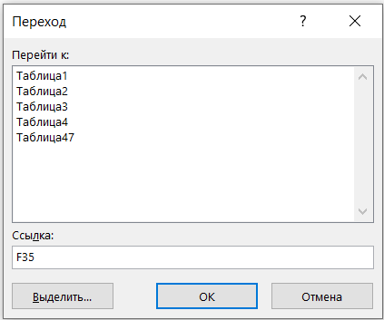 Нажмите F5 (или Ctrl + G), чтобы открыть окно «Переход».