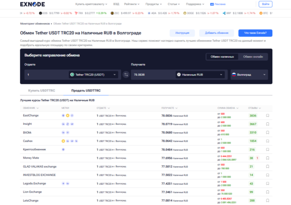 Для удобного выбора надежного офиса и оценки репутации сервисов удобно пользоваться мониторингом Exnode. Он собирает актуальные данные о проверенных обменниках криптовалют в Волгограде, направлениях работы и уровне доверия клиентов, что помогает безопасно и комфортно совершать любые операции с криптовалютой в городе.