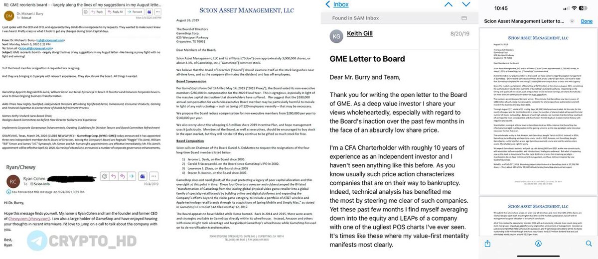 Π°: Π°ΠΊΡΠΈΠΈ ΡΠΊΠ°ΡΡΠ²Π°Π»ΠΈΡΡ ΠΊ ΠΈΡΡΠΎΡΠΈΡΠ΅ΡΠΊΠΈΠΌ ΠΌΠΈΠ½ΠΈΠΌΡΠΌΠ°ΠΌ, ΠΈΠ½Π²Π΅ΡΡΠΎΡΡ ΡΠ΅ΡΡΠ»ΠΈ Π²Π΅ΡΡ, Π° ΡΠΎΠ²Π΅Ρ Π΄ΠΈΡΠ΅ΠΊΡΠΎΡΠΎΠ² Π½ΠΈΡΠ΅Π³ΠΎ Π½Π΅ ΠΏΡΠ΅Π΄ΠΏΡΠΈΠ½ΠΈΠΌΠ°Π». β Π’ΠΎΠ³Π΄Π° Π² ΠΈΠ³ΡΡ Π²ΠΎΡΠ΅Π» ΠΠ°ΠΉΠΊΠ» ΠΡΡΡΠΈ (ΡΠΎΡ ΡΠ°ΠΌΡΠΉ ΠΈΠ· The Big Short), ΠΊΠΎΡΠΎΡΡΠΉ Π²Π»Π°Π΄Π΅Π» ~3% GME. ΠΠ½ ΠΎΡΠΏΡΠ°Π²ΠΈΠ» Π² ΡΠΎΠ²Π΅Ρ Π΄ΠΈΡΠ΅ΠΊΡΠΎΡΠΎΠ² ΡΠ΅ΡΠΈΡ ΠΏΠΈΡΠ΅ΠΌ Ρ ΡΡΠ΅Π±ΠΎΠ²Π°Π½ΠΈΡΠΌΠΈ ΡΠ΅ΡΠΎΡΠΌ. β ΠΠ°ΠΉΠΊΠ» ΠΡΡΡΠΈ Π½Π°ΡΡΠ°ΠΈΠ²Π°Π» Π½Π° ΠΎΠ±ΡΠ°ΡΠ½ΠΎΠΌ Π²ΡΠΊΡΠΏΠ΅ Π°ΠΊΡΠΈΠΉ GME Π½Π° $237m, ΡΠΎΠΊΡΠ°ΡΠ΅Π½ΠΈΠΈ ΡΠ°Π·Π΄ΡΡΡΡ