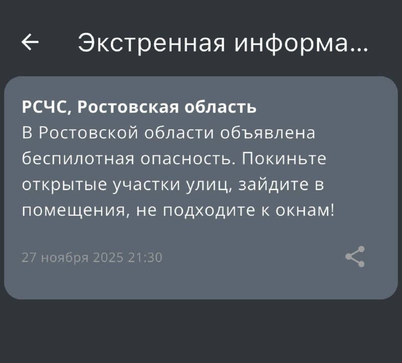 ‼️ В Ростовской области объявлена беспилотная опасность