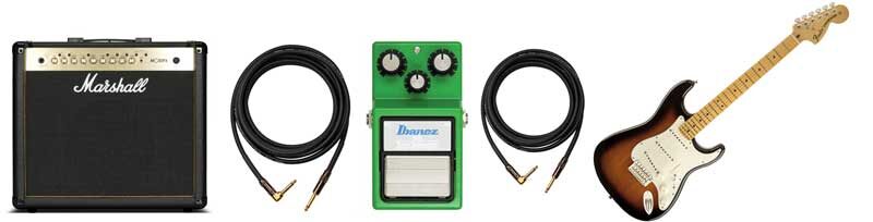 Когда вы покупаете свою первую педаль, то сначала нужно правильно подключить её к гитаре и усилителю. Это просто, но требует нескольких вещей. Обычно мы подключаем гитары напрямую к входному разъёму усилителя. Когда мы добавляем гитарную педаль в эту цепочку, нам нужно немного изменить способ подключения.