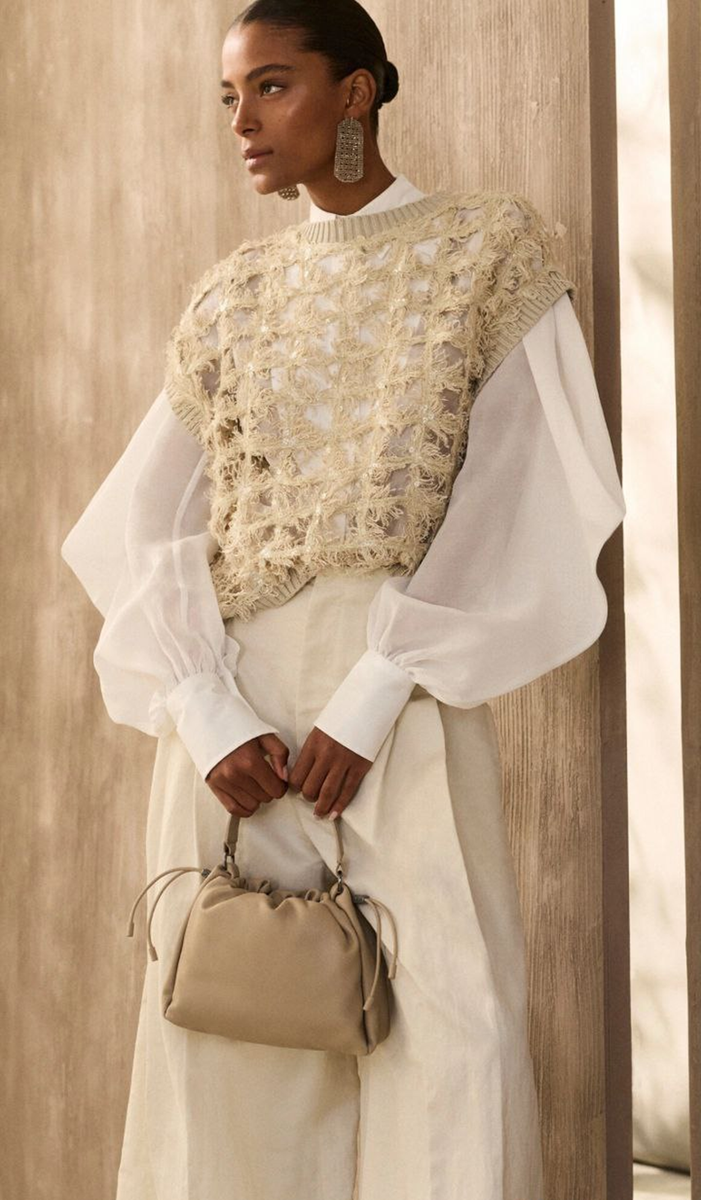 Берите паузы. Останавливайтесь, цепляйтесь взглядом за что-то простое и знакомое, делайте вдох поглубже и честно разрешайте себе не спешить, не вмешиваться, не подгонять события и не рваться вперед любой ценой. Иногда лучшее, что можно сделать, – чуть отстраниться и позволить жизни идти своим чередом, без бесконечного контроля и суеты. Порой достаточно просто дышать и наблюдать, как мир сам находит баланс и расставляет акценты без нашего участия. В эти спокойные промежутки, когда внешне почти ничего не происходит, внутри как раз и формируются новые смыслы, заполняются внутренние пробелы и прорастает что-то по-настоящему значимое. На этом фоне особенно любопытно смотрится трикотажная подборка из лукбука коллекции Brunello Cucinelli весна-лето 2026, SS 2026. Вещи из этой линии словно продолжают идею тихого, но уверенного присутствия: не кричат, не спорят с миром, а мягко подчеркивают атмосферу достоинства и внутреннего спокойствия. Если судить по представленным моделям, наступающий теп