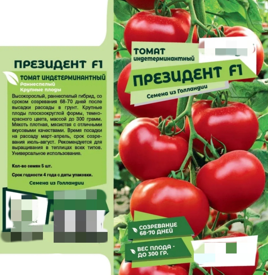 Когда стала искать о нём информацию в интернете очень удивилась. Вроде бы как гибрид это голландский, копий у него нет, а различия в описаниях есть. Странно 🤷🏼♀️ Я выращивала вот из такой пачки Мой «Президент» полностью соответствует всему что там написано. Ну может плоды были не такими ровными Но мне кажется очень похоже ☺️ По высоте был около 2 метров, но в некоторых источниках указывают что этот гибрид полудет с ростом 1-1,5м. Так же на некоторых сайтах есть фото томата слегка ребристого. Странно однако... В общем если вы будете выращивать из такой пачки как на фото выше, то у вас вырастет именно то, что там нарисовано. Проверено ✅ Само растение тонкое, но не слабое. Стройный, с резными листьями и со средним стремлением к пасынкам. При посеве 10 марта, высадке в теплицу 20 апреля уже 2 июня активно формировал первую кисть (не забываем про зиму в мае). Вела его в 2 стебля, но он легко вытянул бы и 3. При этом места ему много не надо, не загущенный кустик. Помидорки хороши! Как гов