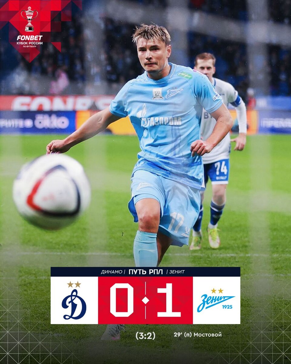 ⚡️ «Зенит» победил «Динамо» в ответном матче, но вылетел в Путь регионов Кубка России