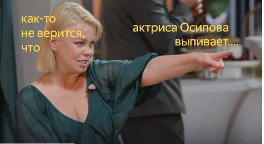 И тут раскрылась тайна про актрису Осипову. Её подруга сказала, что проблемы с выпивкой у ней нет. Но артистка хочет вообще никогда не употреблять такие напитки, полный ЗОЖ. такая у актрисы цель.