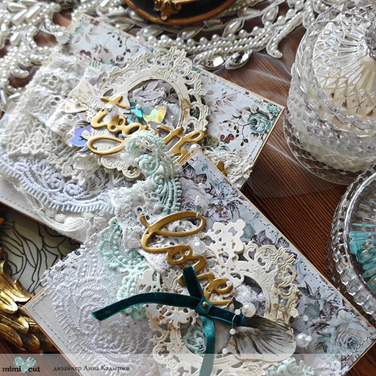 Сейчас у меня, Анны Кадырджи, проходит СП по пышному блокноту. И чтобы не отвлекаться на другую тему и ещё раз вдохновиться морем кружева и блеска я решила сделать свадебные открытки. Им, как никому другому, идёт блеск и роскошь кружев. Тем более вещь в доме часто нужная. Идти с такой на торжество - особое удовольствие. Главная задумка открыток - половинка верхней части состоит только из кружева. Никакой бумаги! Так сказать юбка :) А что может не затеряться, а быть акцентом и таким весомым центром? Конечно, красивейшая рамка - моя любимая "Ореховые рамы у зеркал", а в паре с уже классическими и легендарными "Семейные ценности". Украсила я их самым мной горячо любимым бантом из набора "Театральная гостинная" и нежно приложила изящную ветку из набора "Дай мне руку". Вуаля. А самое интересное, что пока я писала вам это послание то даже не подглядывала названия ножей. Ведь когда что-то действительно любишь хорошо знаешь как их зовут :) Всем вдохновения, ваша Аня.