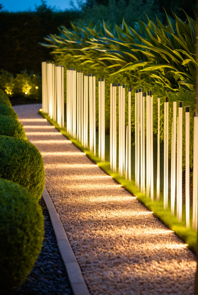 Функциональное применение: подсветка дорожек, акцентное освещение растений и зонирование участка